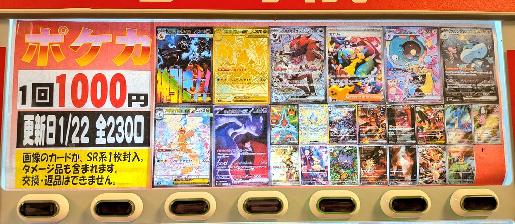 シーガル郡山店です! ポケカ1000円自販機ガチャ補充いたしました! 大当たりはリザードンX ex(SAR)‼️ よろしくお願いいたします(ง🔥Д🔥)ง