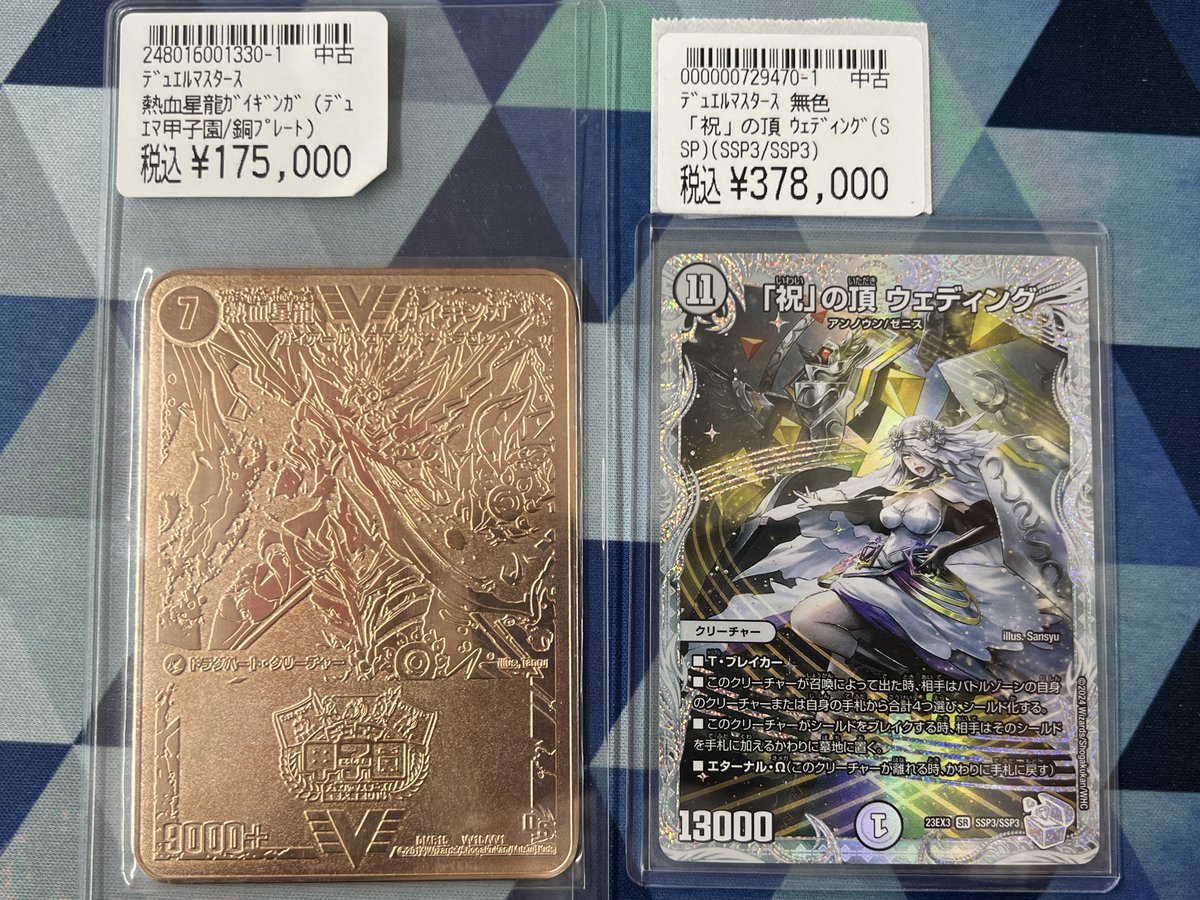 🌈激レアカード販売情報🌈 デュエルマスターズ ✨️「祝」の頂ウェディング (SSP) ¥378,000 ✨️熱血星龍ガイギンガ (銅プレート/デュエマ甲子園) ¥175,000 こちら販売中です‼️ 貴方のコレクションに是非ぜひお迎えくださいませ(*´ω`*)