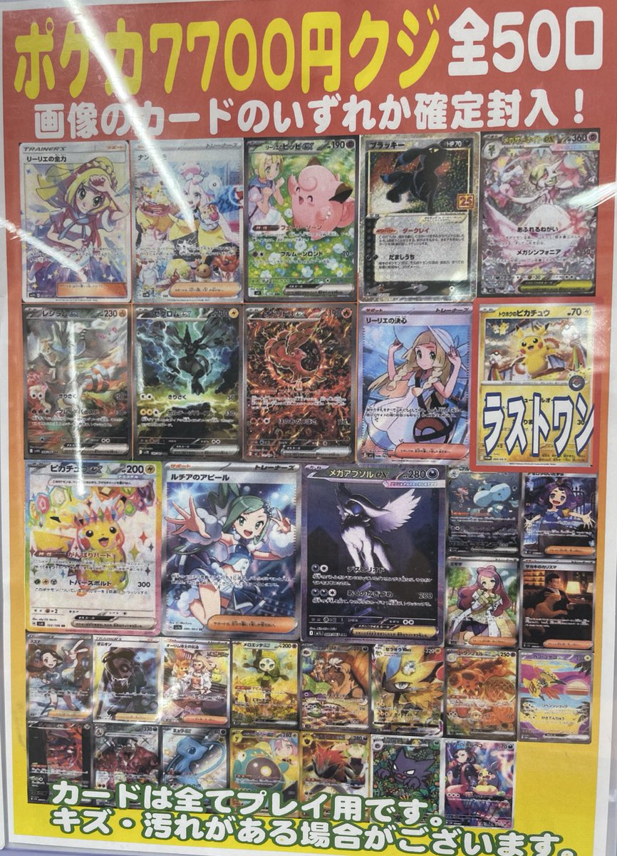 こんにちは(」・ω・) シーガル郡山店です。 ポケカ 7700円クジ 残り13口となっております‼️ ラストワンまでもう少し‼️となっております。 ご来店お待ちしております(*^^*)