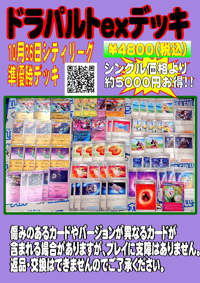 シーガル郡山店です! ポケモンカード 大会で活躍中 ドラパルトex ストリンダー のデッキ作成しました!! どちらもシングルで揃えるよりもお得です!! 店頭ファイルでもご確認いただけます! お手頃価格のデッキも販売中です! ご来店お待ちしております😊 #シーガル郡山店デッキ販売
