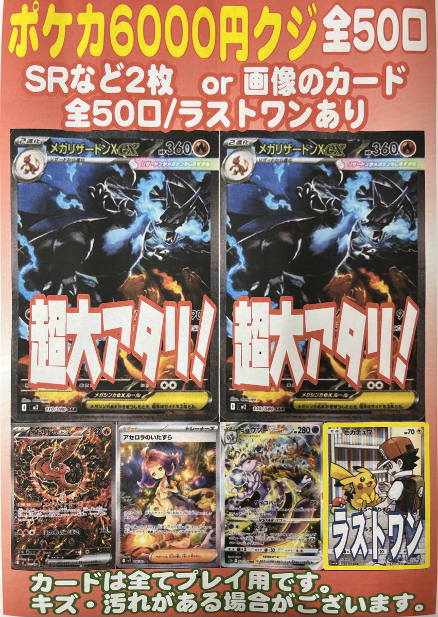 🌈ポケカ6000円くじ🌈 全50口 こちら新しく展開致しました‼️ メガリザX SARを狙え😁✨️