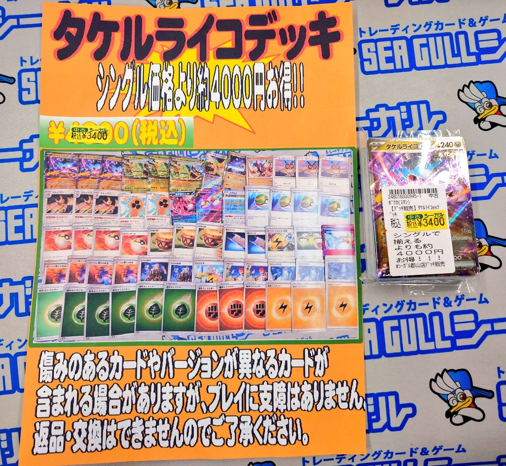 シーガル郡山店です! ポケモンカード デッキ販売 タケルライコデッキ 以前より お求めやすくなりました!!ショーケースにて展開中です! この機会に ポケモンカードをはじめて みませんか? ご来店お待ちしております😊
