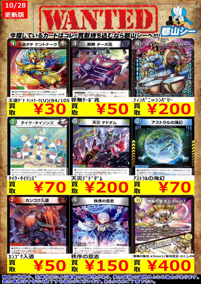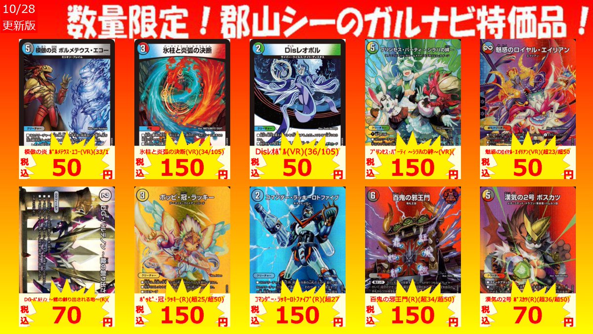 10月29日にデュエマ平日非公認大会を行います❗️ 参加費無料、優勝賞品はデュエマ中古1000円割引券です✨ ご参加お待ちしております🙇♂️