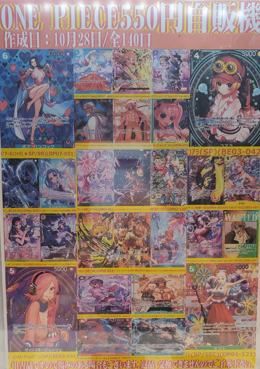 シーガル郡山店です❗ ワンピ自販機新しく追加致しました! よろしくお願いします🙇