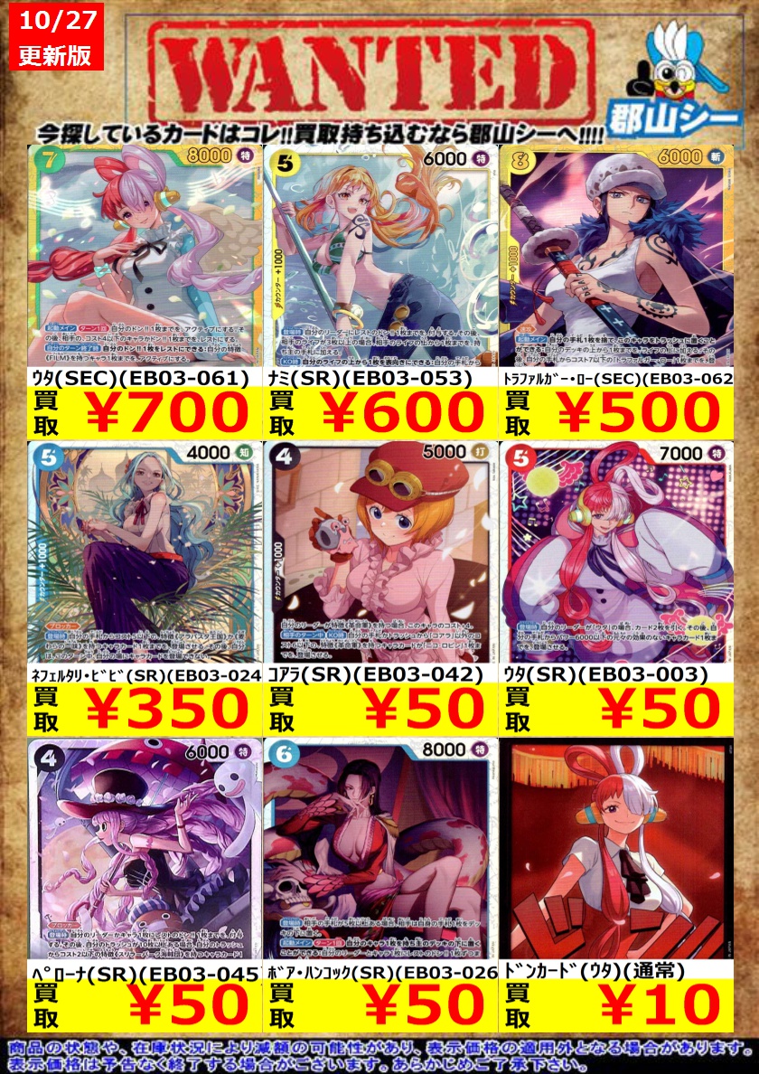 シーガル郡山店です❗ ワンピ新弾特価商品追加致しました よろしくお願いします🙇