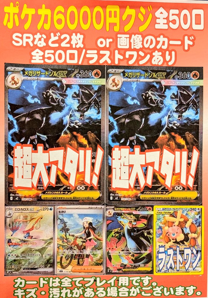 シーガル郡山店です! 大人気ポケカ6000円クジ作成いたしました! よろしくお願いします✨✨