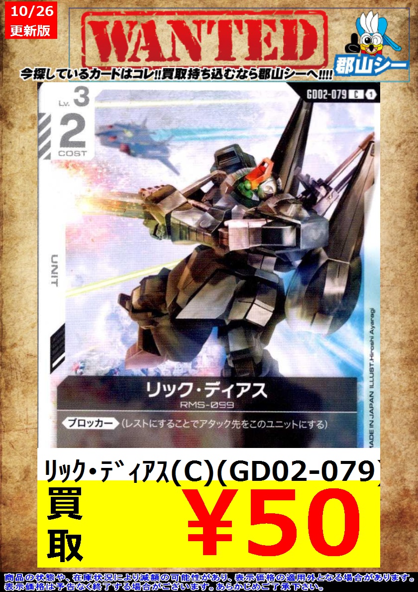 シーガル郡山店ガンダムCGお買取情報!! リック・ディアス(C)(GD02-079) ¥50