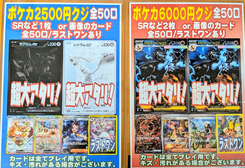 シーガル郡山店です! ポケカ2500円くじ ポケカ6000円くじ 作成いたしました! よろしくお願いします‼️(ง🔥Д🔥)ง