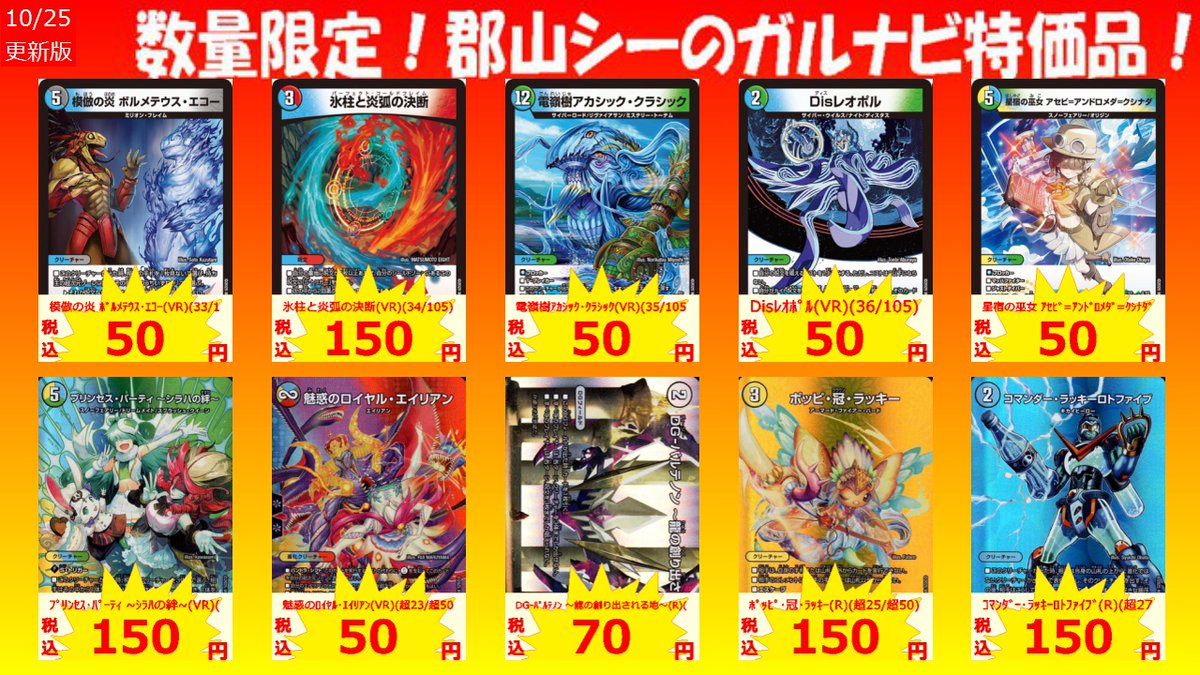 数量限定!郡山シー限定ガルナビ特価品 氷柱と炎弧の決断(VR)(34/105) ¥150 ピザスターのアンティハムト ¥170 双龍覇王 モルトVERSUS(DMR)(DM3/DM4) ¥3,800 #デュエマ #シーガル郡山 #アツアツ特価