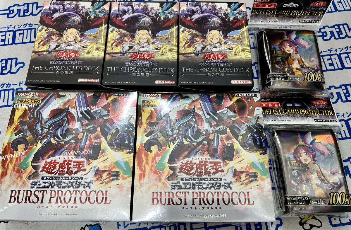 明日25日(土)発売🎉 #遊戯王OCG ✅『BURST PROTOCOL』 ✅『THE CHRONICLES DECK 白の物語』 ※お一人様3個まで コナミフレンドリーショップ限定商品 ✅デュエリストカードプロテクター THE CHRONICLES 白の物語 2 在庫ございます❗️ 明日開店時より販売開始です。 ご来店をお待ちしております😊