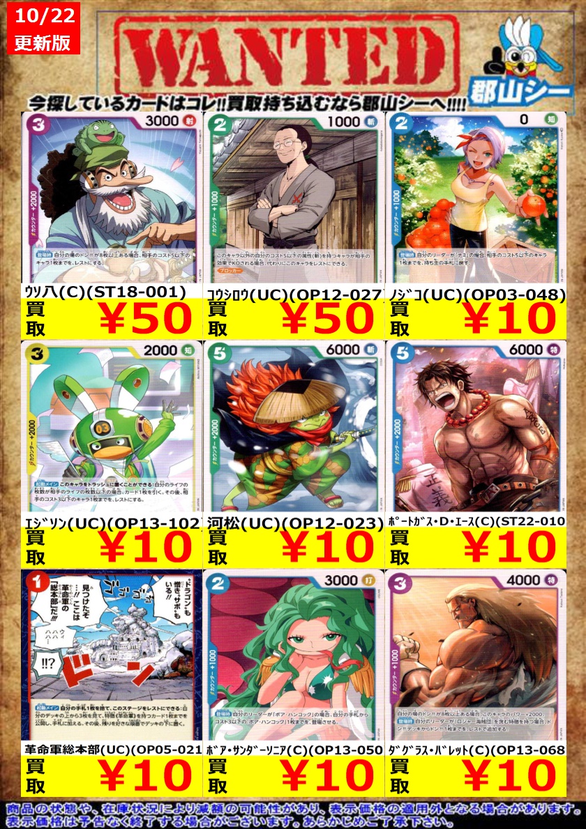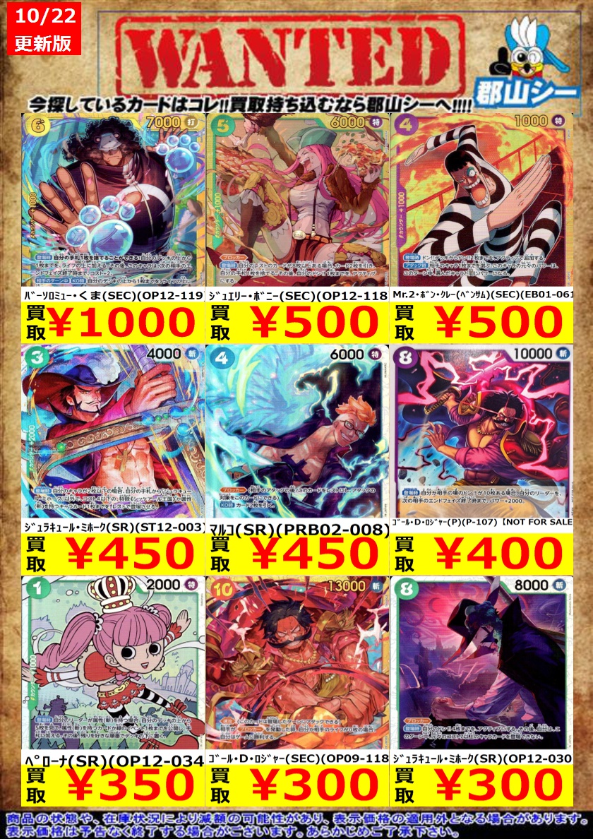 シーガル郡山店です❗ ワンピ特価商品追加致しました。 よろしくお願いします🙇