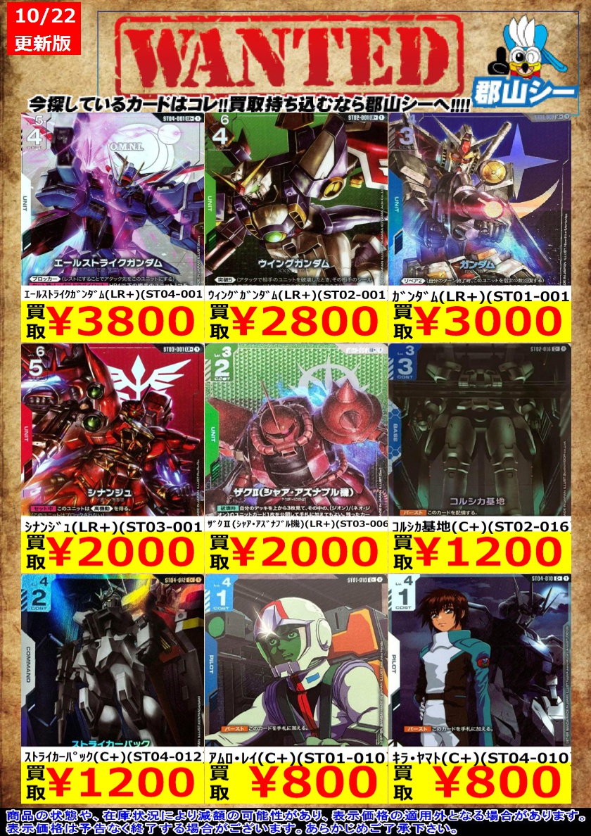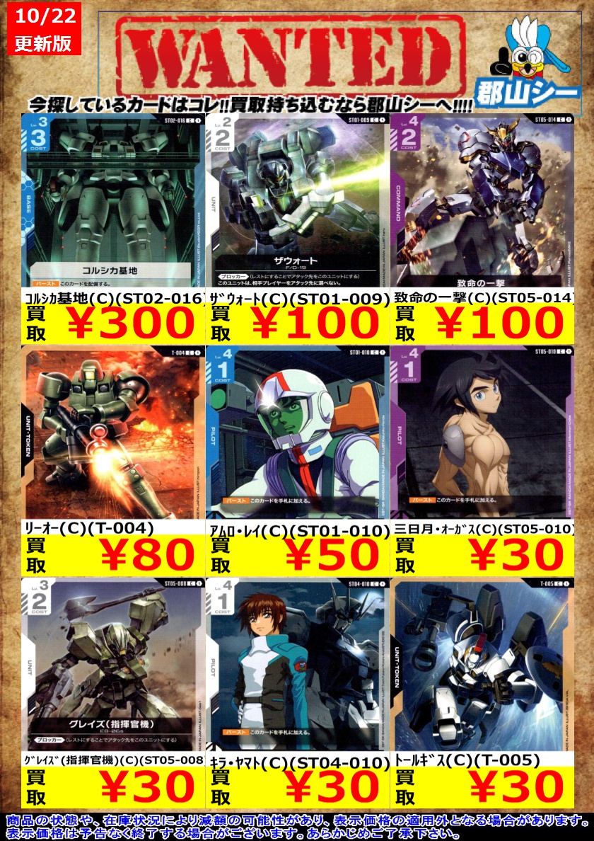 シーガル郡山店ガンダムCGお買取情報!! グレイズ(指揮官機)(C)(ST05-008) ¥30 アムロ・レイ(C)(ST01-010) ¥50 ザウォート(C)(ST01-009) ¥100