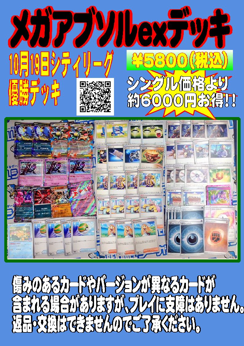 シーガル郡山店です! ポケモンカード 大会で活躍中 メガアブソルex ソウブレイズex フーディン のデッキ作成しました!! 店頭ファイルでもご確認いただけます! ご来店お待ちしております😊 #シーガル郡山店デッキ販売
