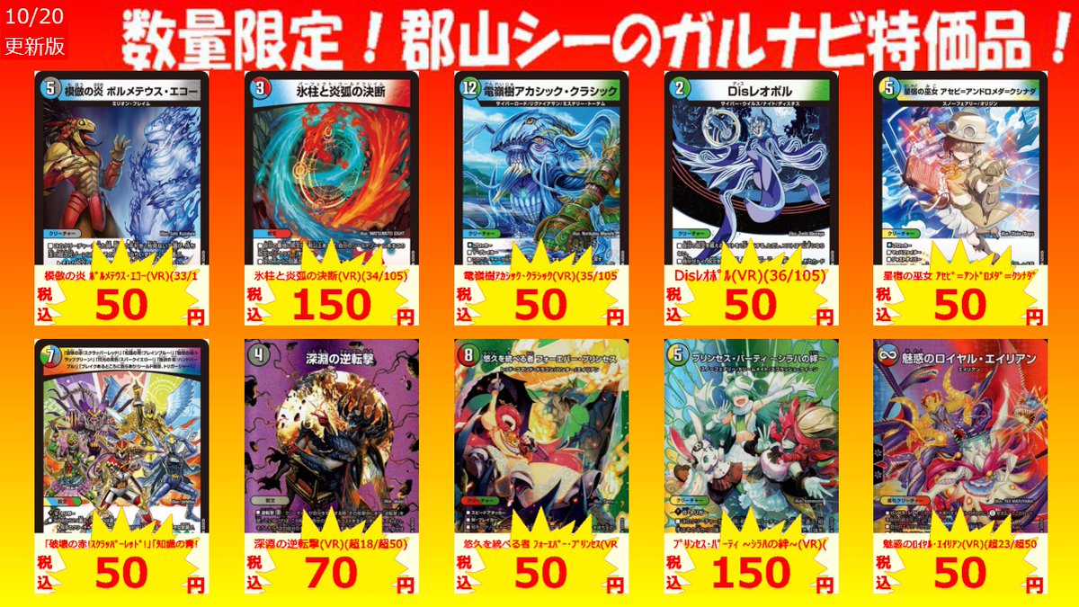 数量限定!郡山シー限定ガルナビ特価品 氷柱と炎弧の決断(VR)(34/105) ¥150 ピザスターのアンティハムト ¥170 双龍覇王 モルトVERSUS(DMR)(DM3/DM4) ¥3,800 #デュエマ #シーガル郡山 #アツアツ特価