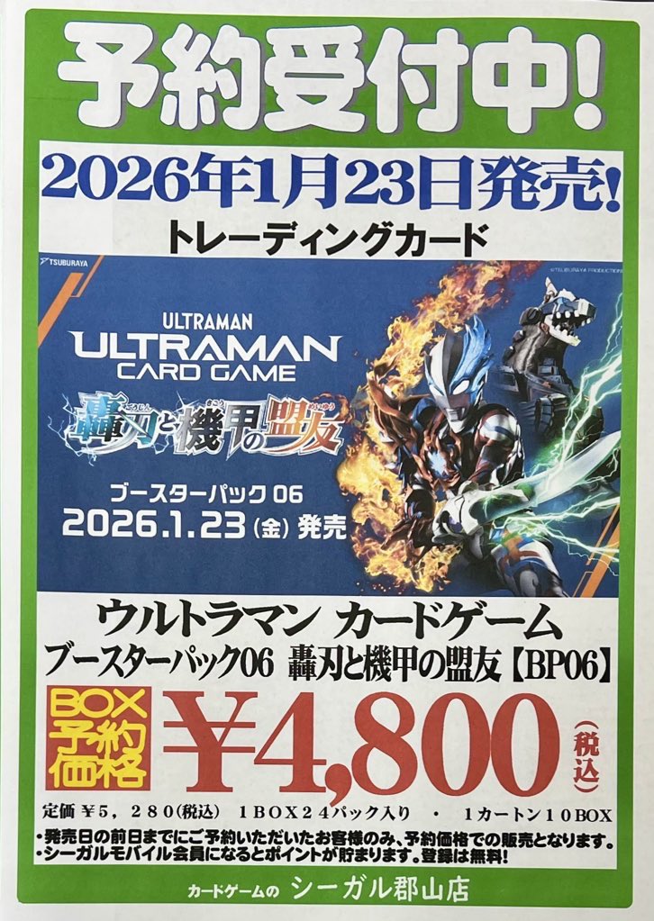 【ご予約受付中】 1/23(金) 発売 #ウルトラマンカードゲーム ブースターパック06 「轟刃と機甲の盟友」 ただいま予約受付中です❗️ ご予約お待ちしております😊 #シーガル郡山店予約