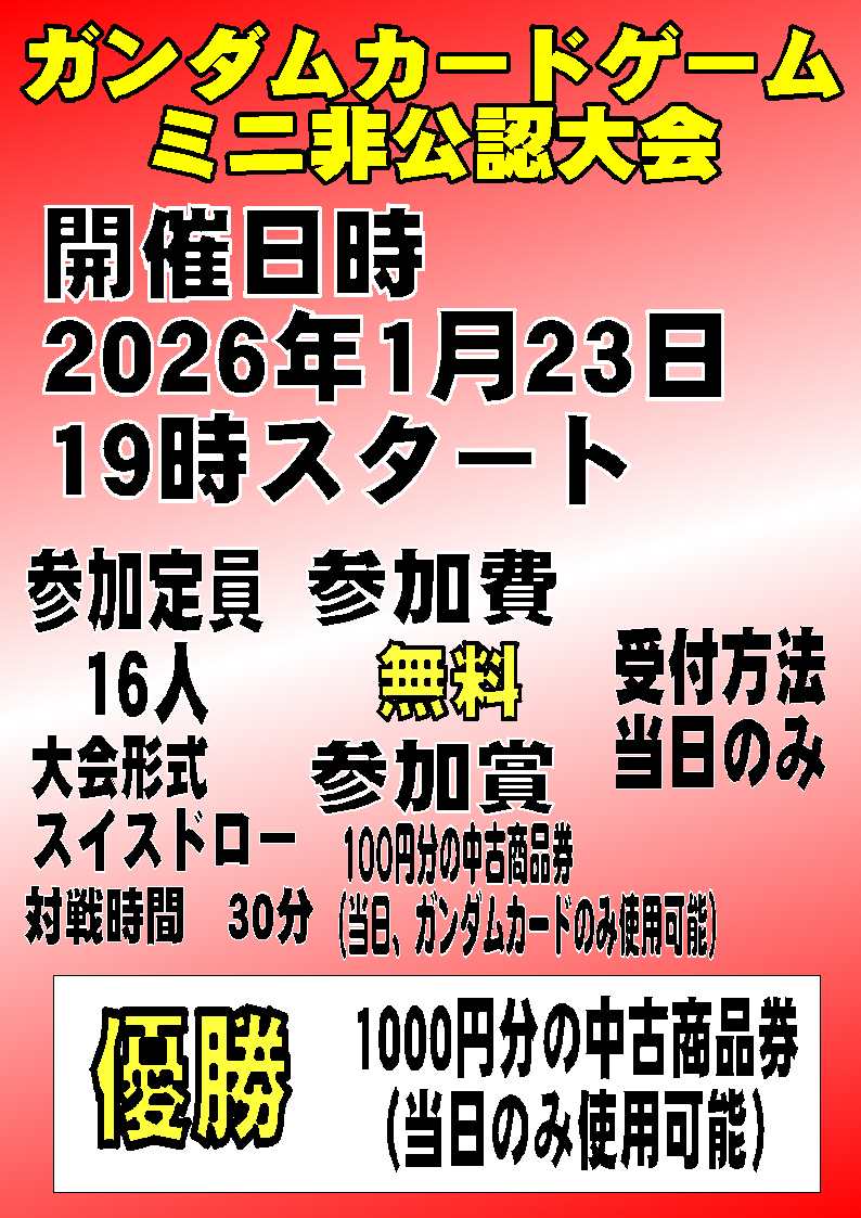 1月21日にデュエマ平日非公認大会を行います❗️ 参加費無料、優勝賞品はデュエマ中1000円割引券です✨ ご参加お待ちしております🙇♂️
