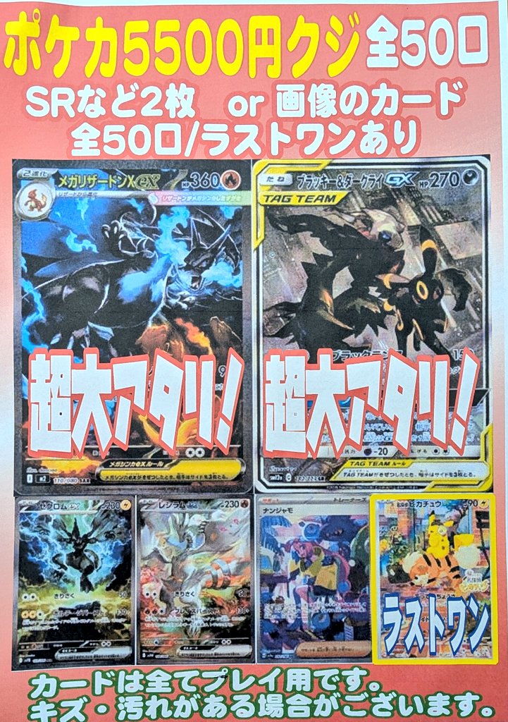 シーガル郡山店です! ポケカ5500円くじ作成いたしました! よろしくお願いします😊😊😊