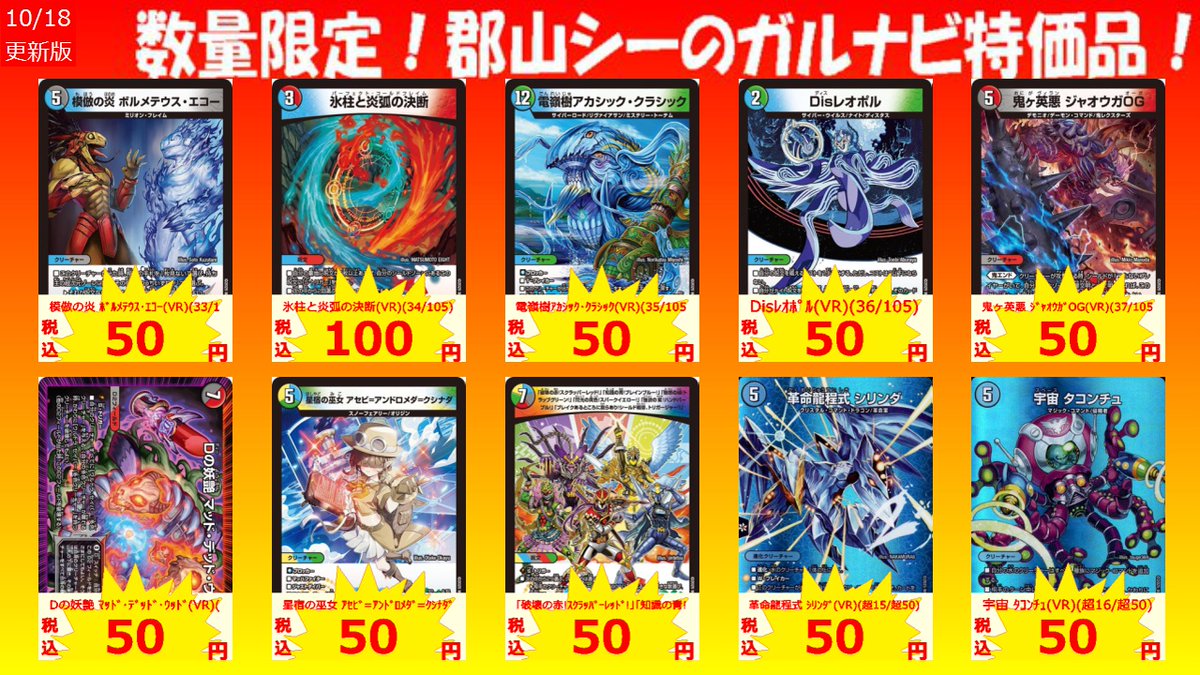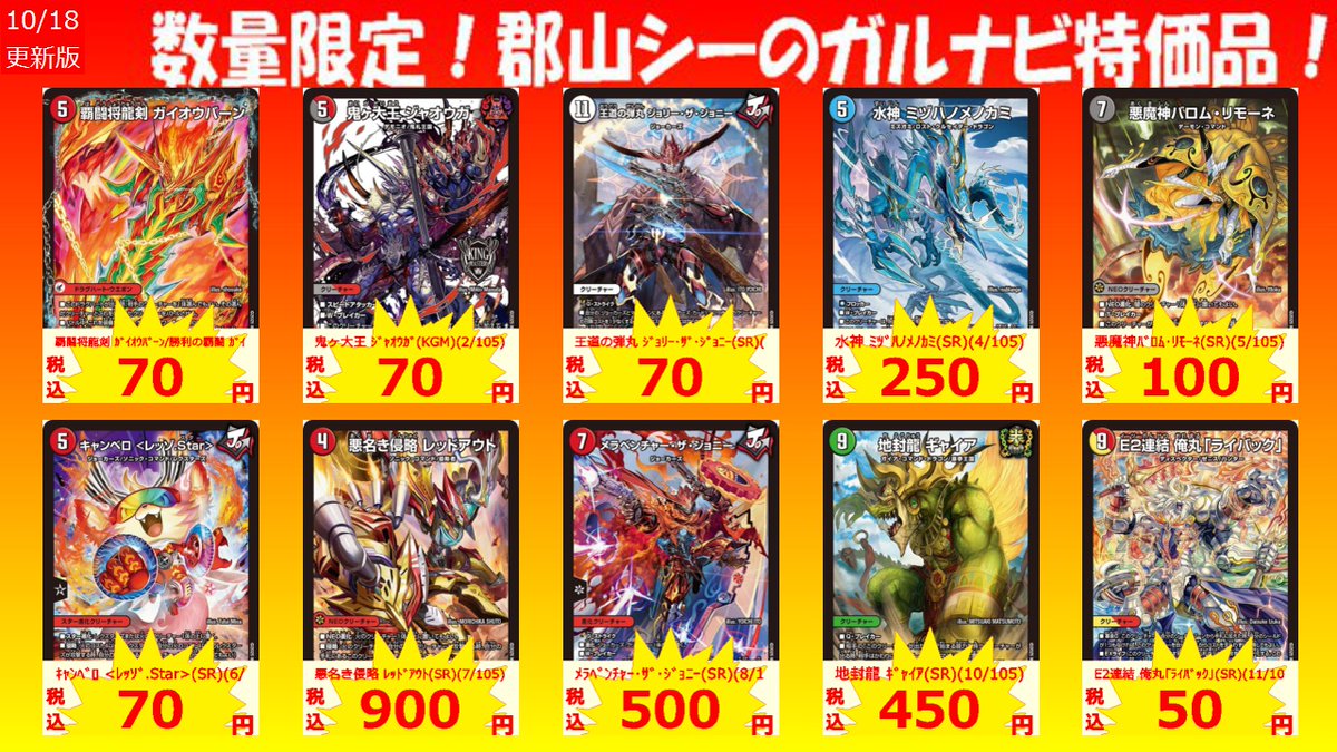 数量限定!郡山シー限定ガルナビ特価品 邪魂転生(R)(超30/超50) ¥33 ミラクル1 ドレミ24(R)(超33/超50) ¥33 刀舞の3号 カツえもん(R)(超35/超50) ¥33 #デュエマ #シーガル郡山 #アツアツ特価