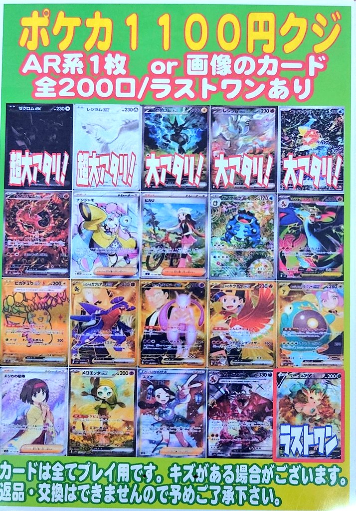 シーガル郡山店です! ✨ポケカ1100円クジ✨ こちら作成いたしました! よろしくお願いします!