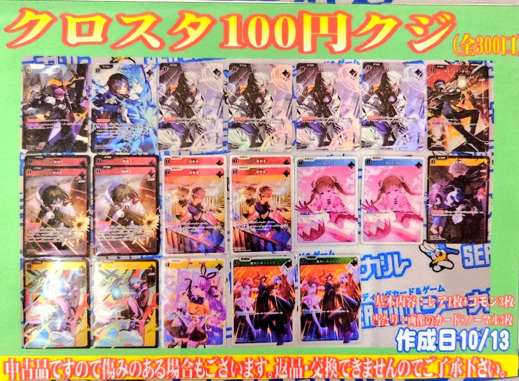 シーガル郡山店です! ✨クロスタ100円クジ✨ こちら作成いたしました! よろしくお願いします!