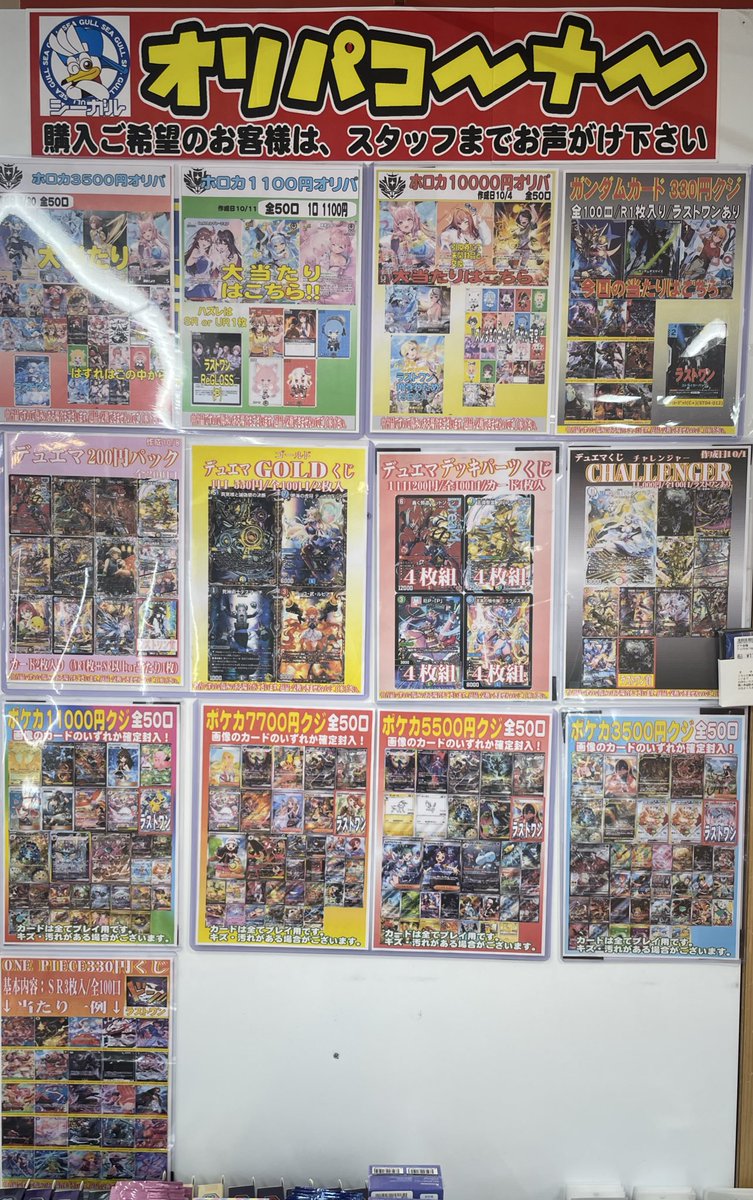 おはようございます‼️ シーガル郡山店です。 ただいま展開中のオリパ各種はこちら⬇️⬇️ となっております。 ご来店お待ちしております‼️