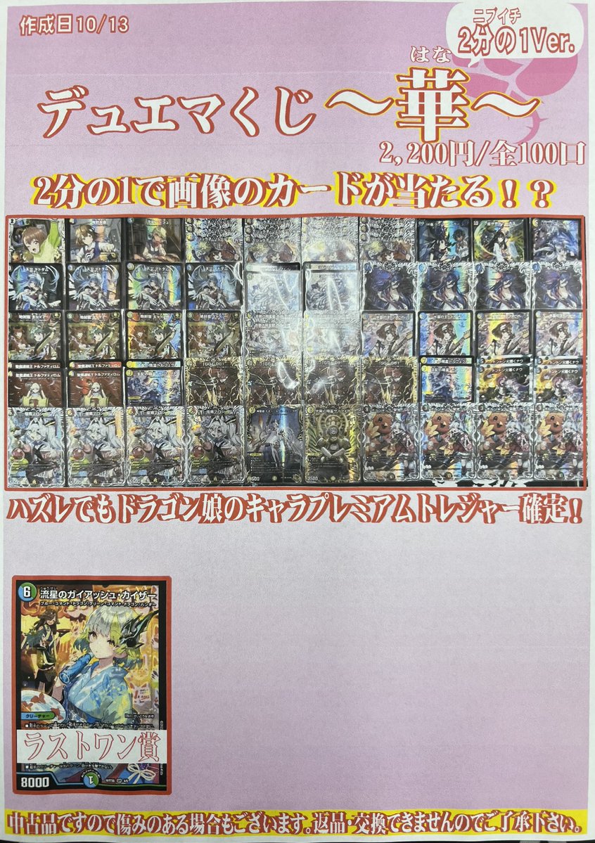 🌈デュエマくじ 華🌈 ¥2,200 全100口 新しく展開致しました‼️ 今回の大当たりはサイフォゲートとエモーショナルハードコアの金トレジャー✨️ 是非ぜひお試しください(*´ω`*)