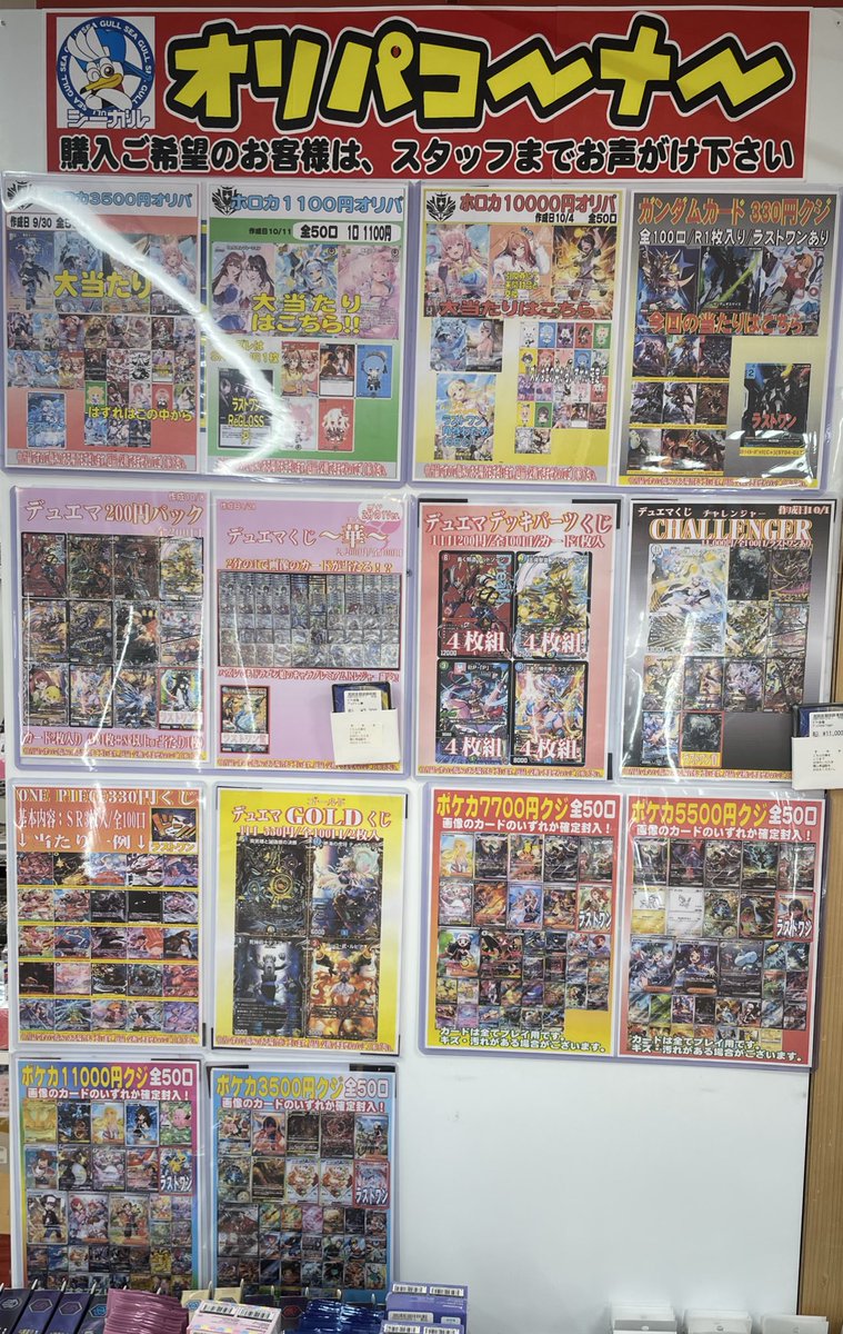こんにちは(」・ω・) シーガル郡山店です。 ただいま展開中のオリパ各種はこちら⬇️⬇️ となっております。 ご来店お待ちしております( *°∀°* )