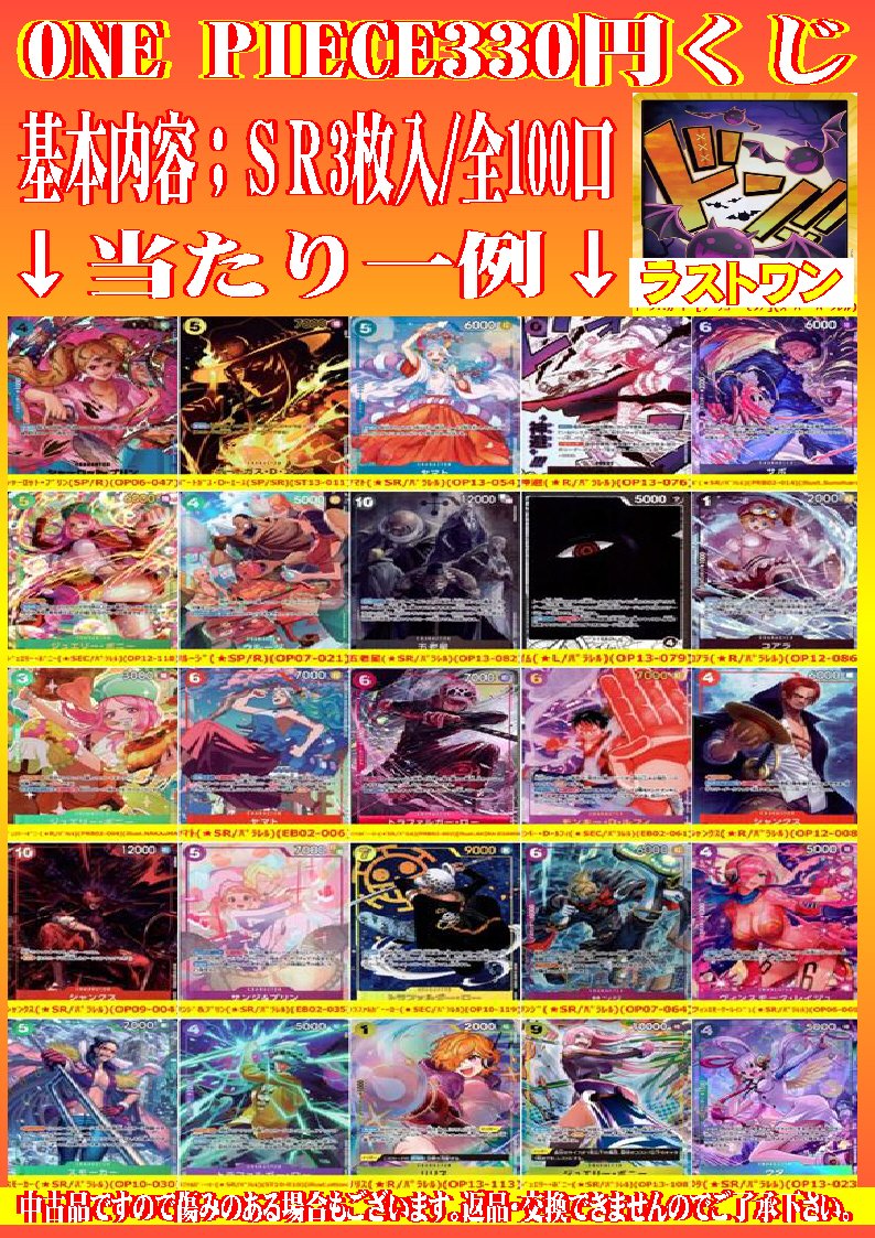 シーガル郡山店です❗ ワンピ330円クジ作成致しました。 よろしくお願いします🙇