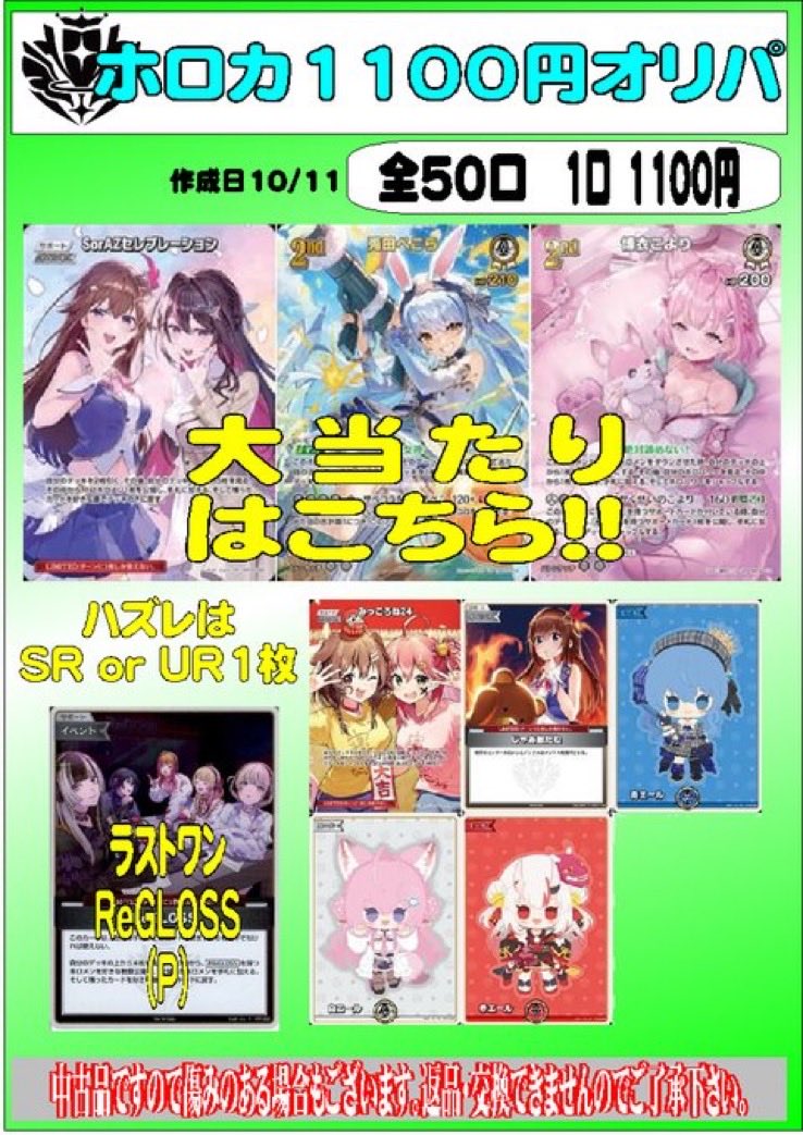 こんにちは(」・ω・) シーガル郡山店です。 ホロカ 1100円オリパを作成致しました! ご来店お待ちしております( *°∀°* )