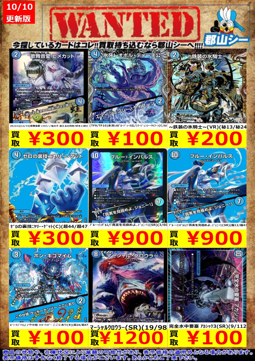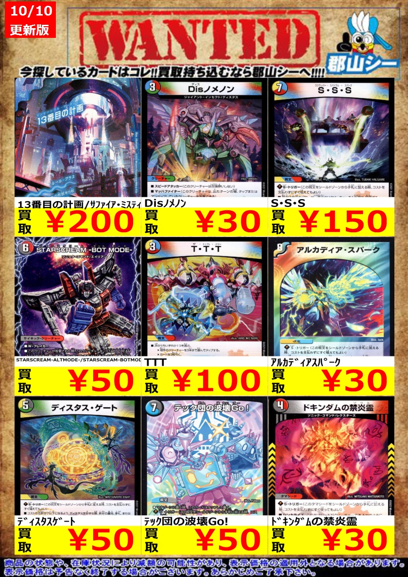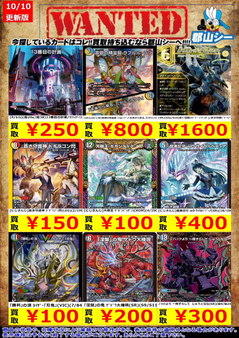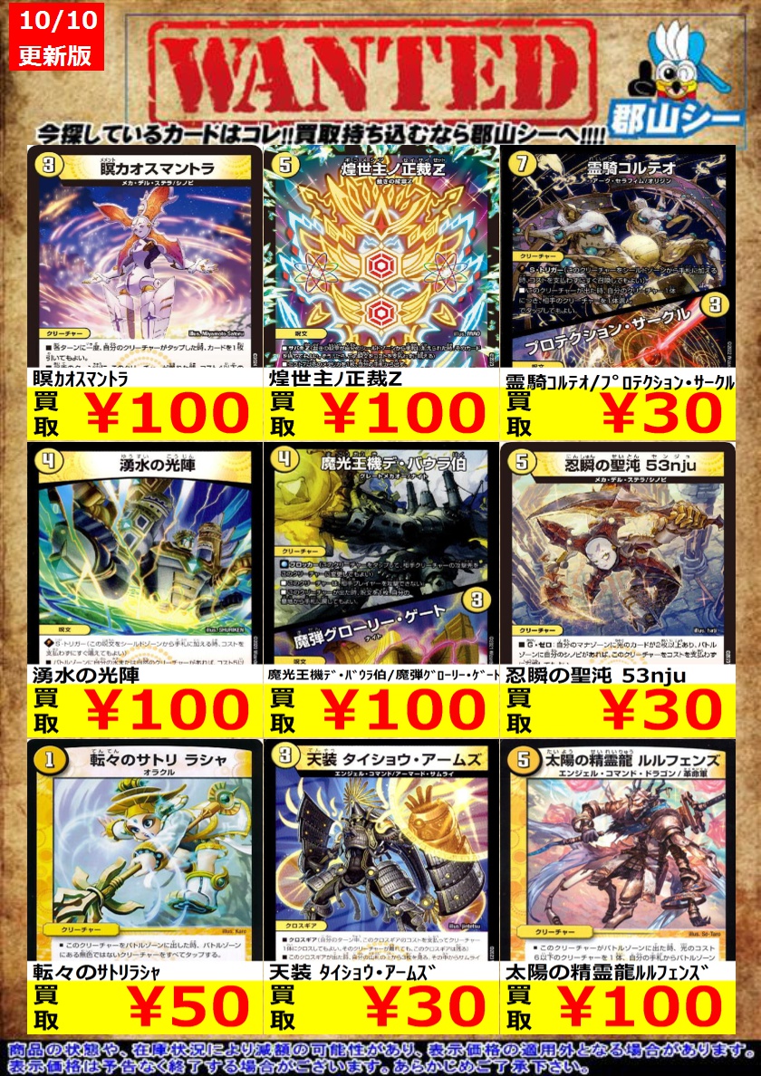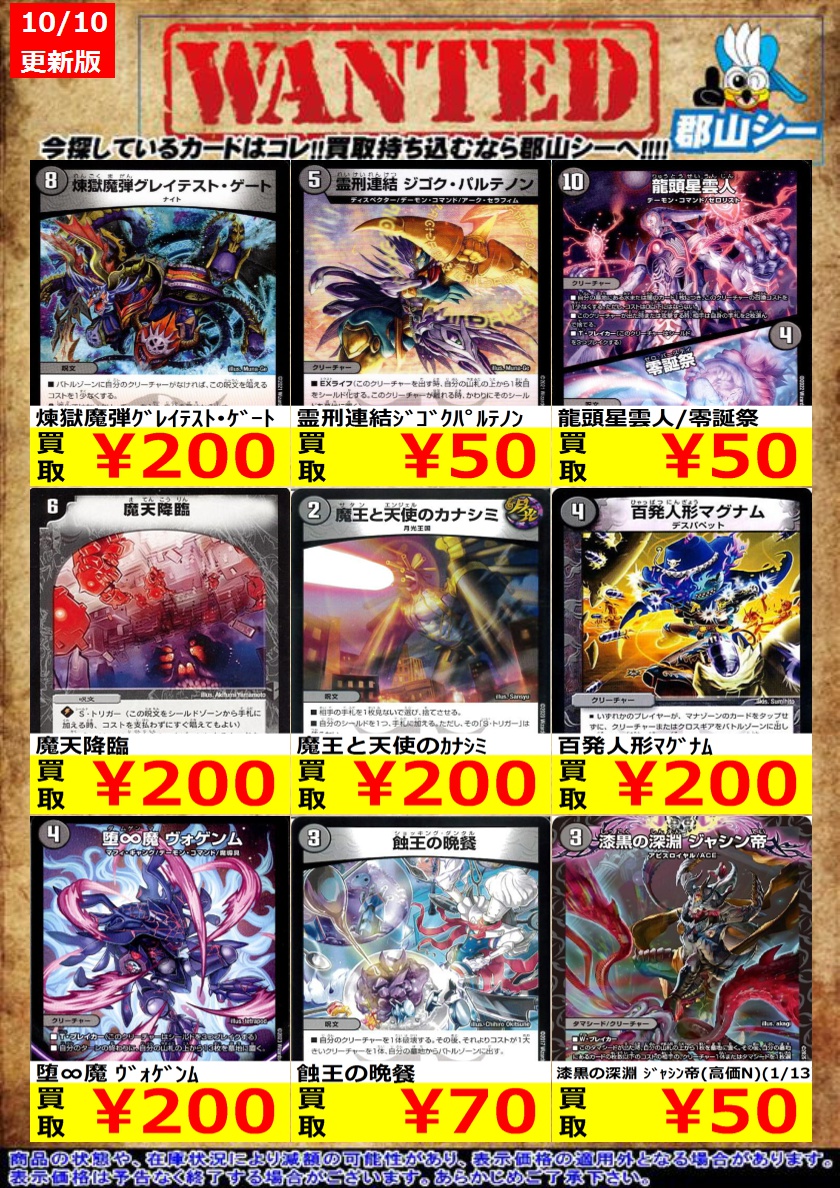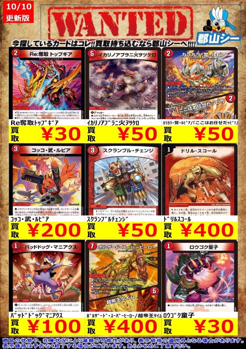 シーガル郡山店デュエマノーマルお買取り情報!! ※商品の状態や在庫状況により減額の可能性があり、表示価格の適用外となる場合がございます。 ロウゴク童子 ¥30 勇愛の天秤 ¥50 イカリノアブラニ火ヲツケロ ¥50