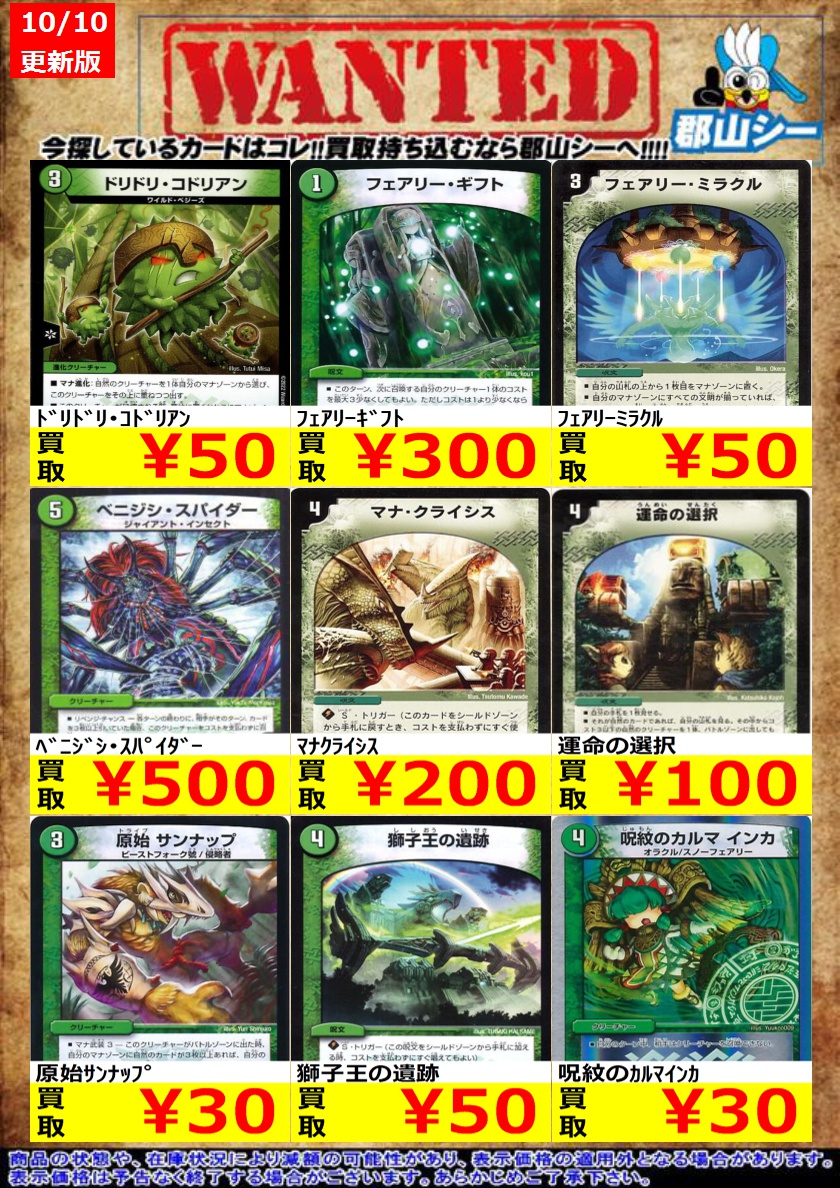 シーガル郡山店デュエマノーマルお買取り情報!! ※商品の状態や在庫状況により減額の可能性があり、表示価格の適用外となる場合がございます。 フェアリーミラクル ¥50 神秘の石柱 ¥100 運命の選択 ¥100