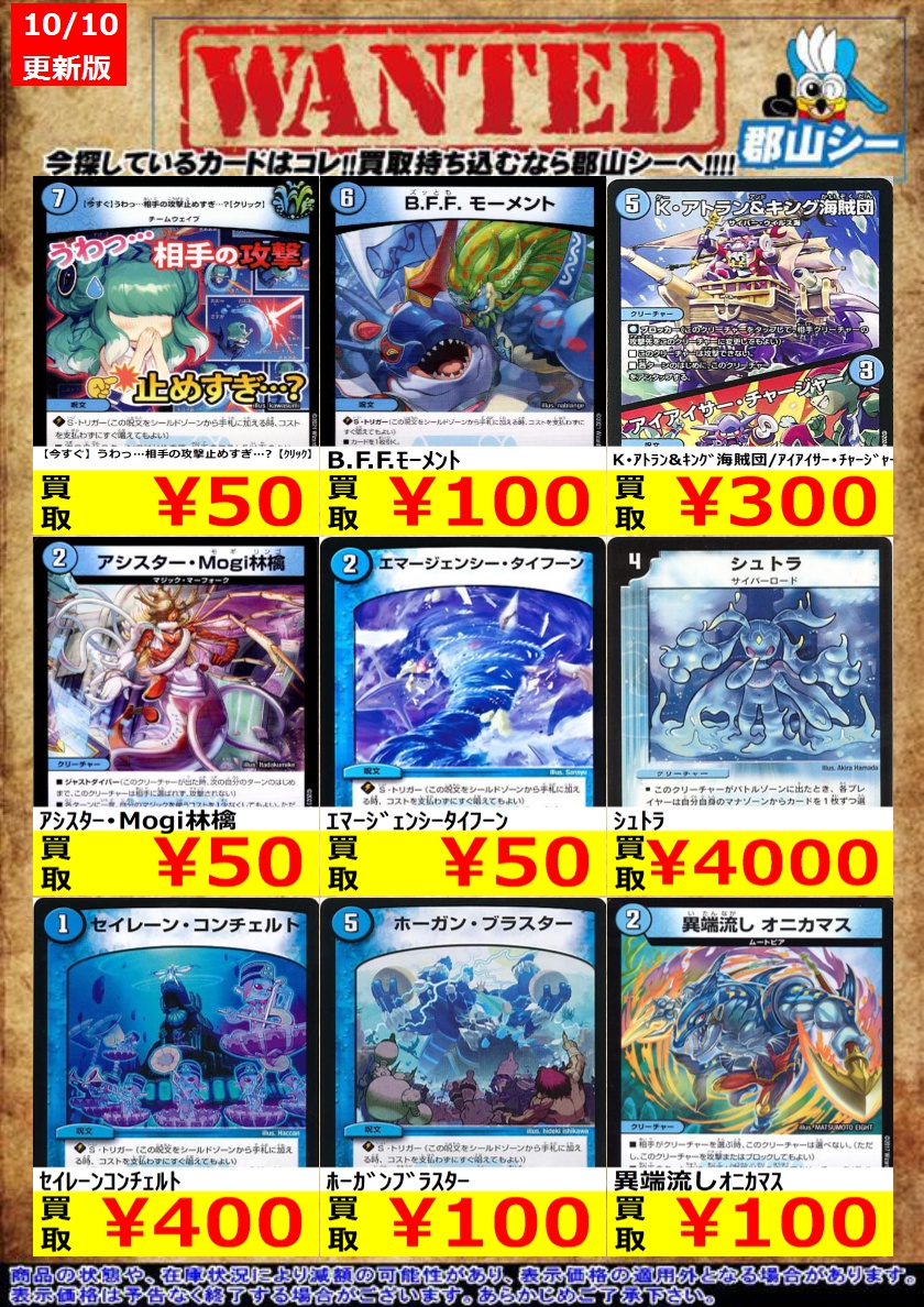 シーガル郡山店デュエマノーマルお買取り情報!! ※商品の状態や在庫状況により減額の可能性があり、表示価格の適用外となる場合がございます。 【今すぐ】うわっ…相手の攻撃止めすぎ…?【クリック】 ¥50 アシスター・Mogi林檎 ¥50
