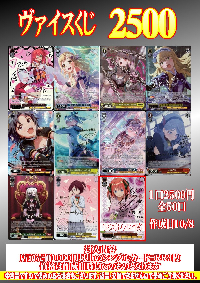 シーガル郡山店ヴァイス担当です( ・∇・) ヴァイスくじ2500 作成しました✨ 1口2500円/全50口 ✨ラストワン賞あり✨ よろしくお願いします‼️
