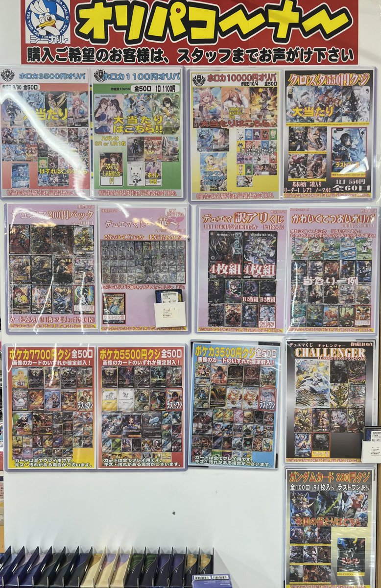 現在販売中のオリパくじラインナップです! 「デュエマくじ華」が残り45口で半分を切っております✨️ 他にも多数展開中‼️ 是非ぜひお試しください(*´ω`*)