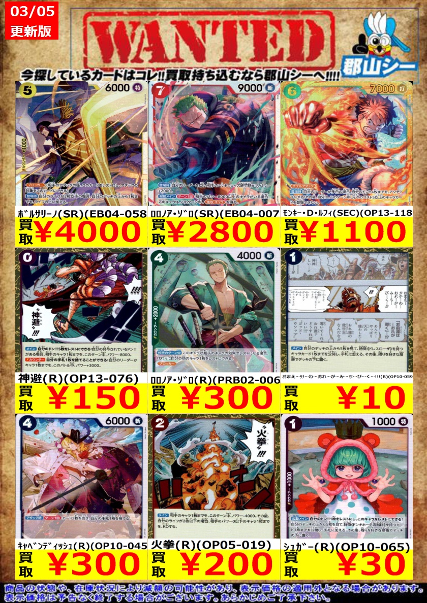 シーガル郡山店です ワンピ特価商品追加致しました‼️ よろしくお願いします🙇