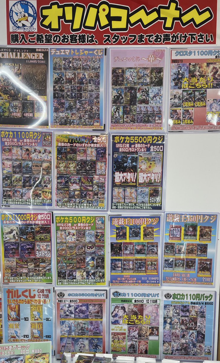 こんにちは(」・ω・) シーガル郡山店です。 ただいま展開中のオリパ各種はこちらとなっております。 ご来店お待ちしております!