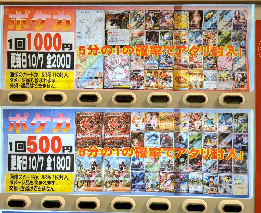 シーガル郡山店です! ポケモンカード自販機ガチャ追加しました! よろしくお願いします(ง🔥Д🔥)ง