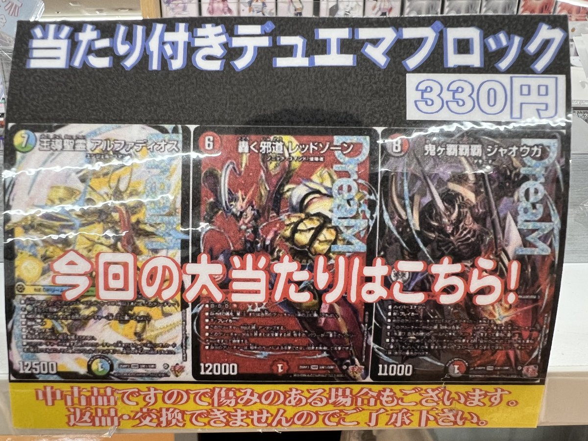 「当たり付きデュエマブロック」 めっちゃ売れてます✨️ まだこの中に当たりが残っているかも…⁉️ 2つ買ってお友達とシールド戦をするのも楽しいですよ😁 是非ぜひお試しください(*´ω`*)