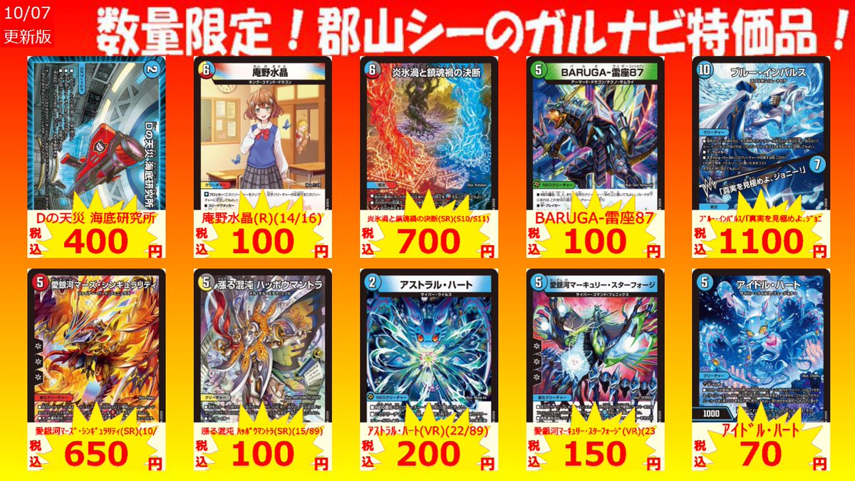 数量限定!郡山シー限定ガルナビ特価品 ARC REALITY COMPLEX(OR)(OR1/OR1) ¥100 俳句爵 Drache der’Bande(SR)(S7/S11) ¥300 Dの天災 海底研究所 ¥400 #デュエマ #シーガル郡山 #アツアツ特価