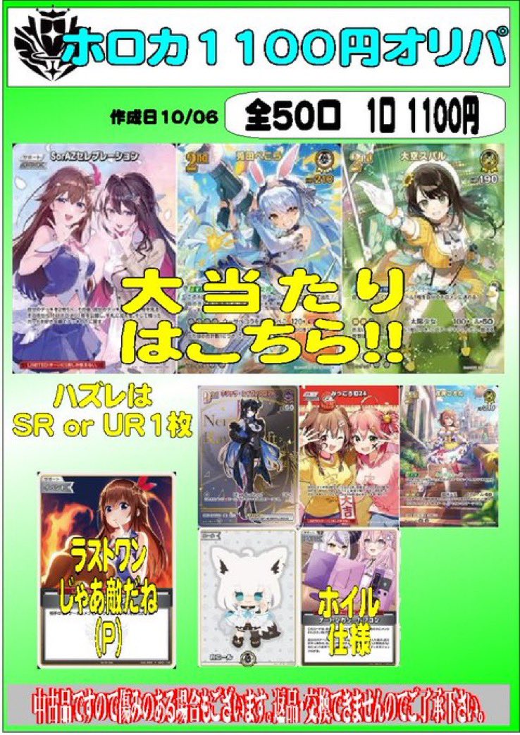 こんにちは(」・ω・) シーガル郡山店です。 ホロカ 1100円オリパを新しく作成致しました! ご来店お待ちしております(*^^*)