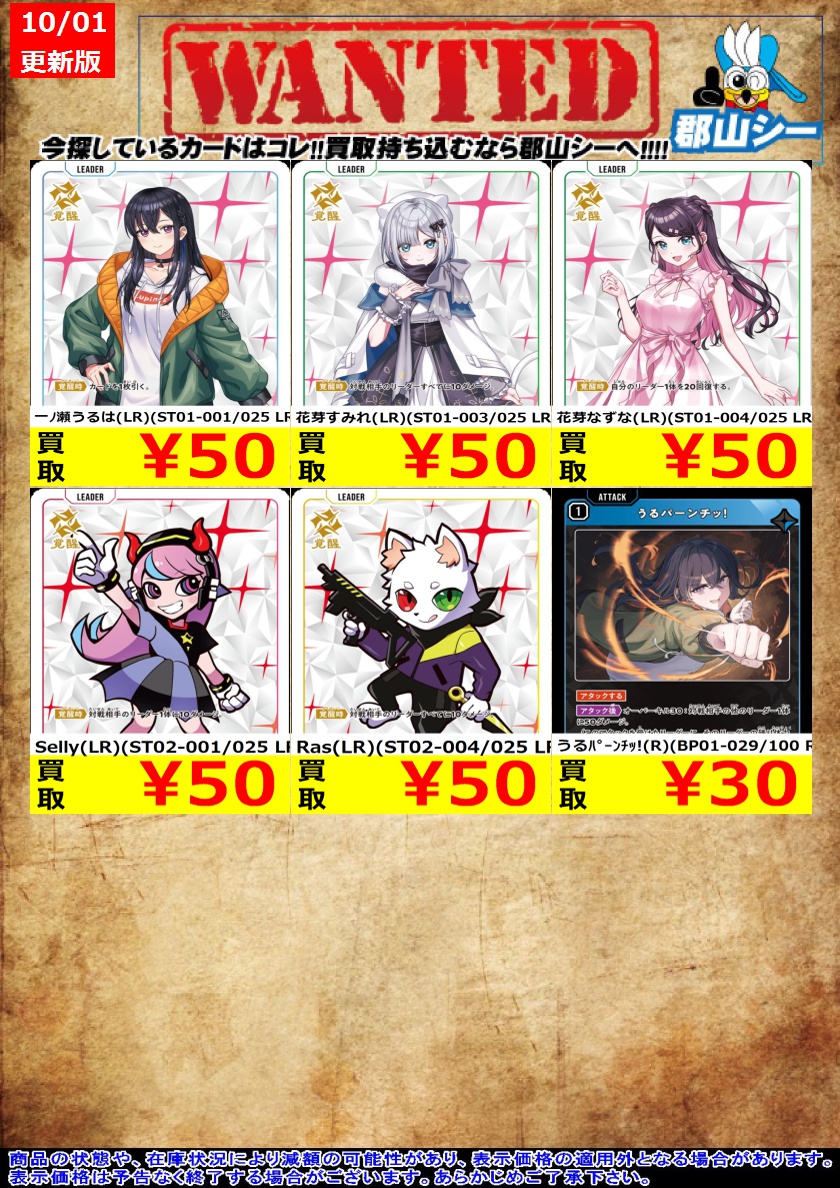 シーガル郡山店クロスタお買取情報!! うるパーンチッ!(R)(BP01-029/100 R) ¥30 花芽なずな(LR)(ST01-004/025 LR) ¥50 花芽すみれ(LR)(ST01-003/025 LR) ¥50 #クロスタ #XrossStars #シーガル郡山店