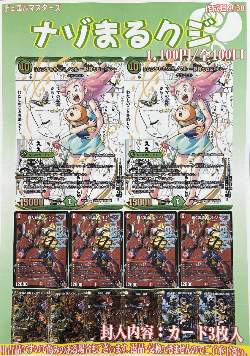 🌈デュエマナゾまるくじ🌈 ¥1,100 全100口 本日より販売開始‼️ 是非ぜひお試しください(*´ω`*)