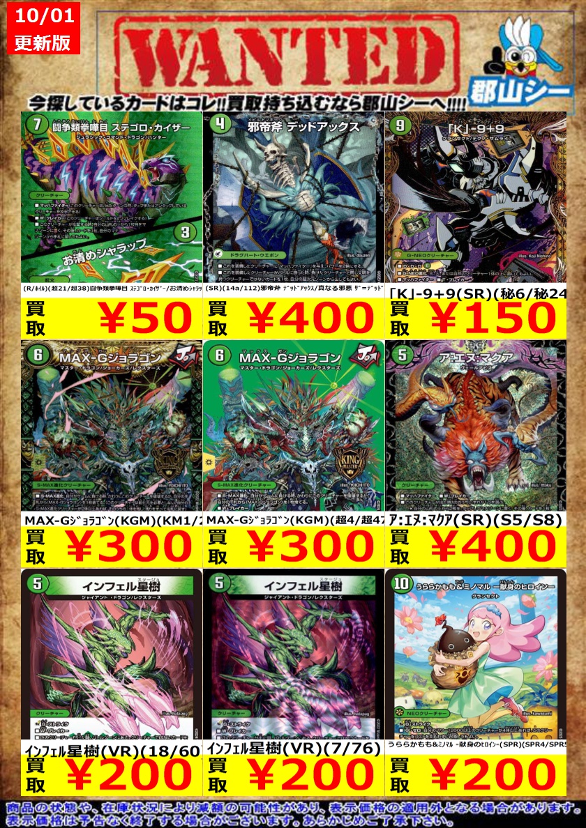 シーガル郡山店デュエマお買取り情報!! シークレットドリームレア各種募集中です!!! 1枚からでもぜひぜひお持ち込みくださいませ😊 ※商品の状態や在庫状況により減額の可能性があり、表示価格の適用外となる場合がございます。