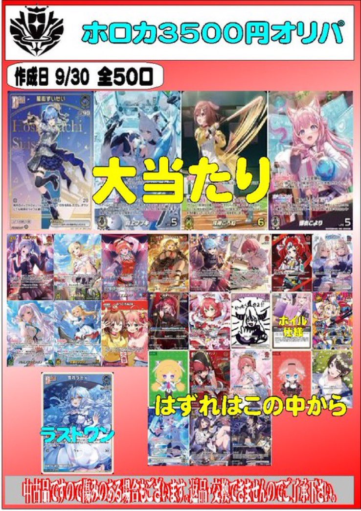 こんにちは(」・ω・) シーガル郡山店です。 ホロカ 3500円オリパを作成致しました。 ご来店お待ちしております(*^^*)
