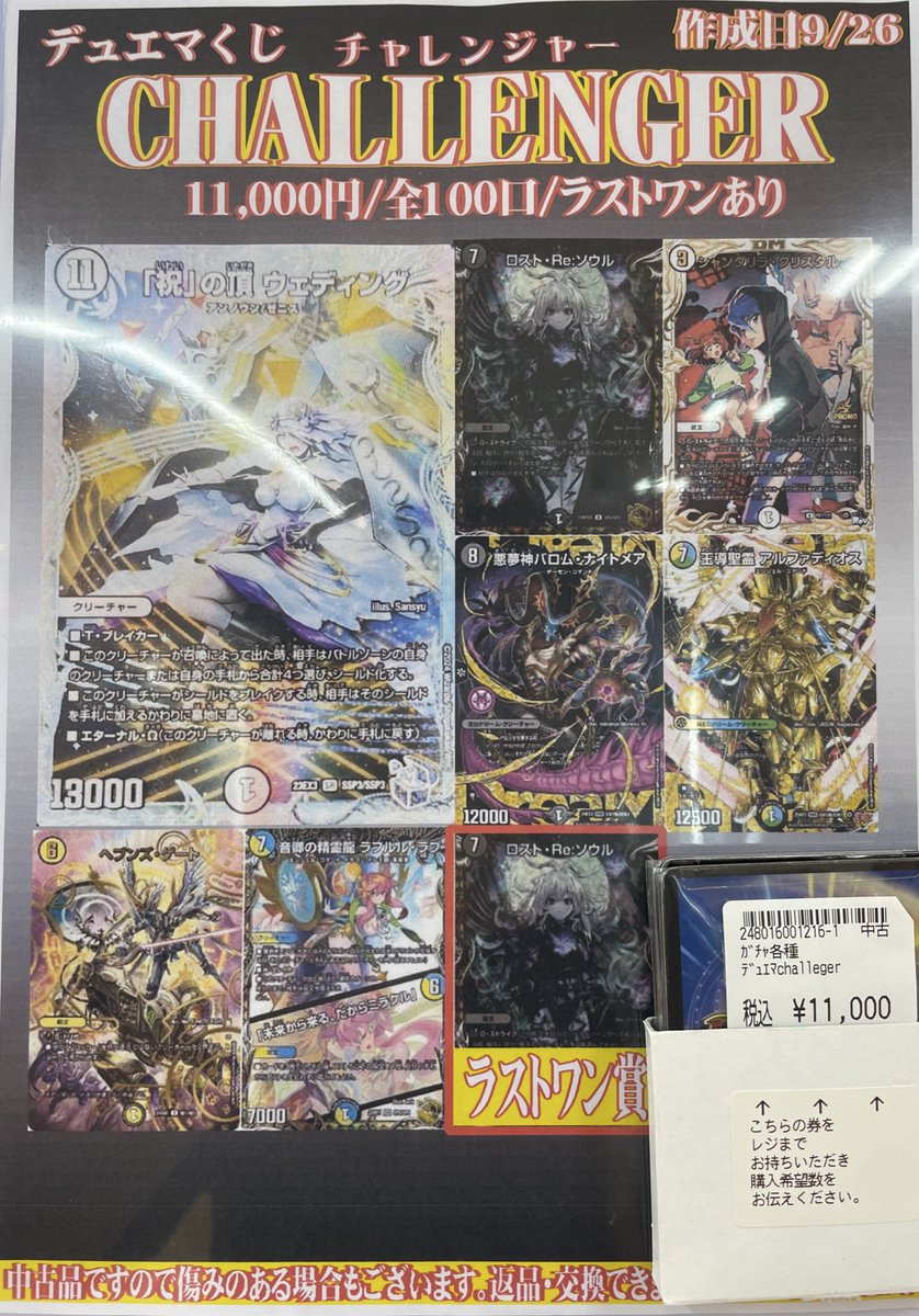 デュエマchallengerくじを作成いたしました❗️ 大当たりは「祝」の頂ウェディングのSSPです✨ チャレンジお待ちしております🔥