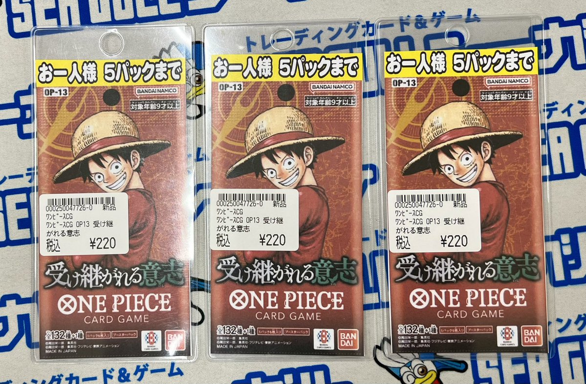 【入荷情報】 ワンピースカードゲーム ブースターパック 「受け継がれる意志」【OP-13】 在庫ございます❗️ おひとり様5パックまでとなります。 皆様のご来店をお待ちしております😊
