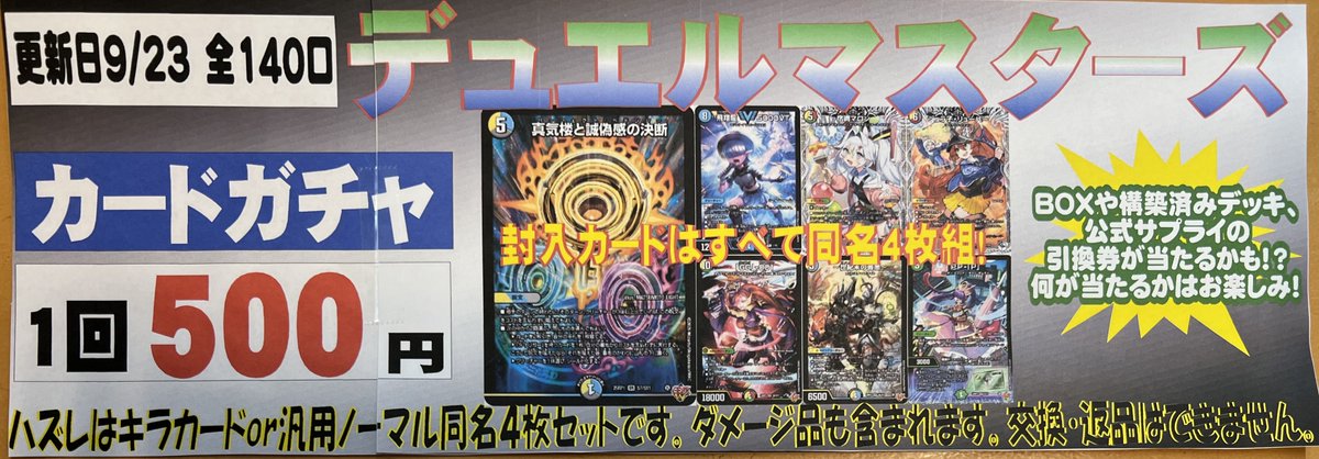 デュエマ500円自販機を更新しました‼️ 500円でペテンシー4枚組が当たっちゃうかも⁉️ 是非ぜひお試しください(*´ω`*)