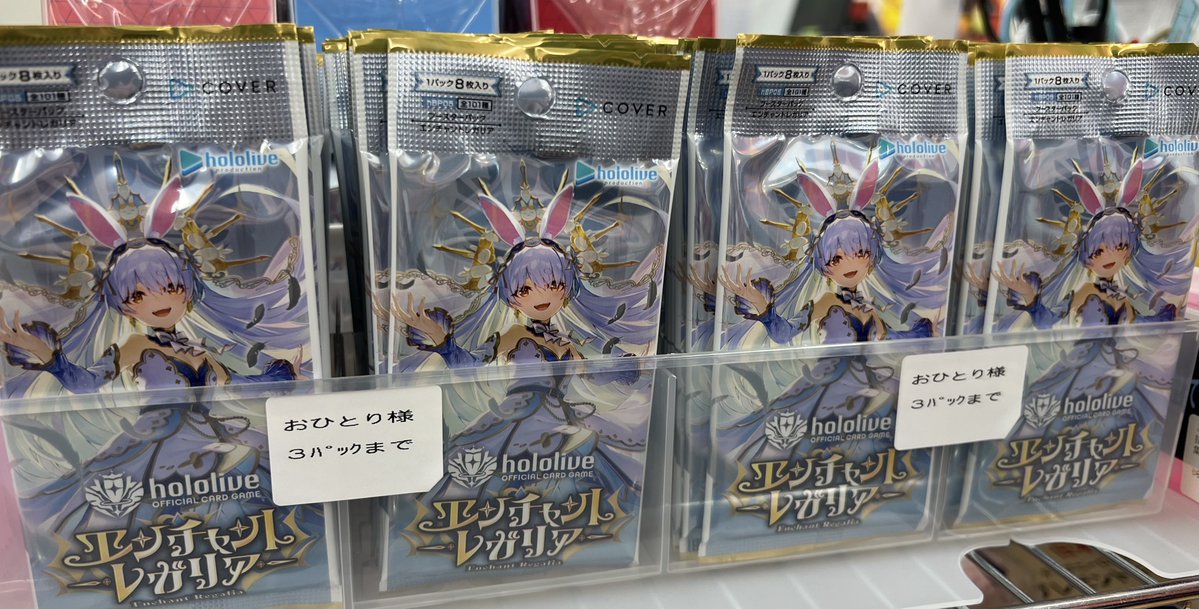 ホロライブ最新弾 『エンチャント レガリア』 一般販売分ございます‼️ ”おひとり様3パック”まで となりますのでよろしくお願い致します☺️ ※ご予約頂いた方は一般販売分はご購入いただけませんのでご了承下さい🙏💦