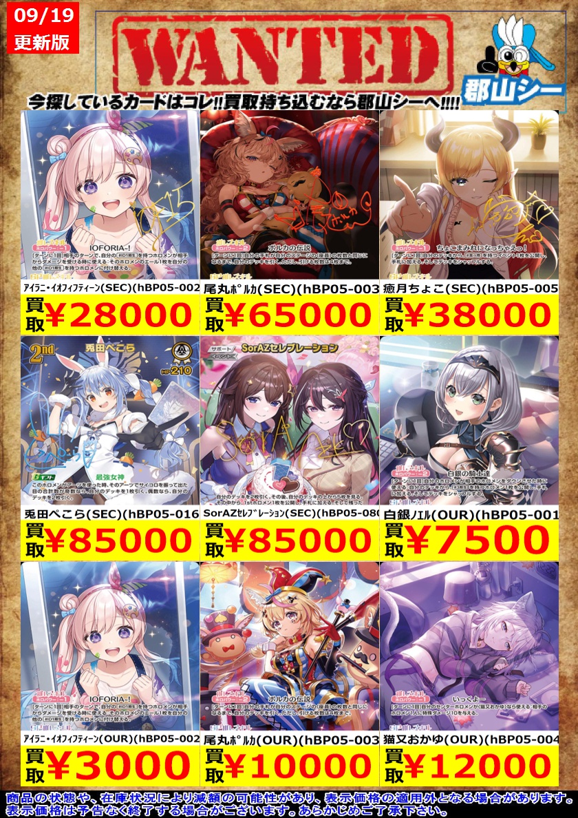 シーガル郡山店ホロライブOCGお買取り情報!! ※商品の状態や在庫状況により減額の可能性があり、表示価格の適用外となる場合がございます。 #ホロライブOCG #ホロカ #シーガル郡山