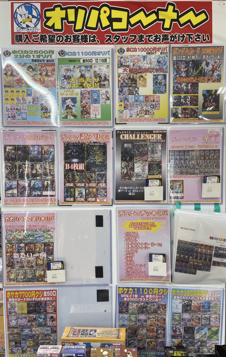 こんにちは(」・ω・) シーガル郡山店です。 ただいま展開中のオリパ各種はこちら⬇️⬇️⬇️⬇️ となっております🙇♀️ ご来店お待ちしております(*^^*)